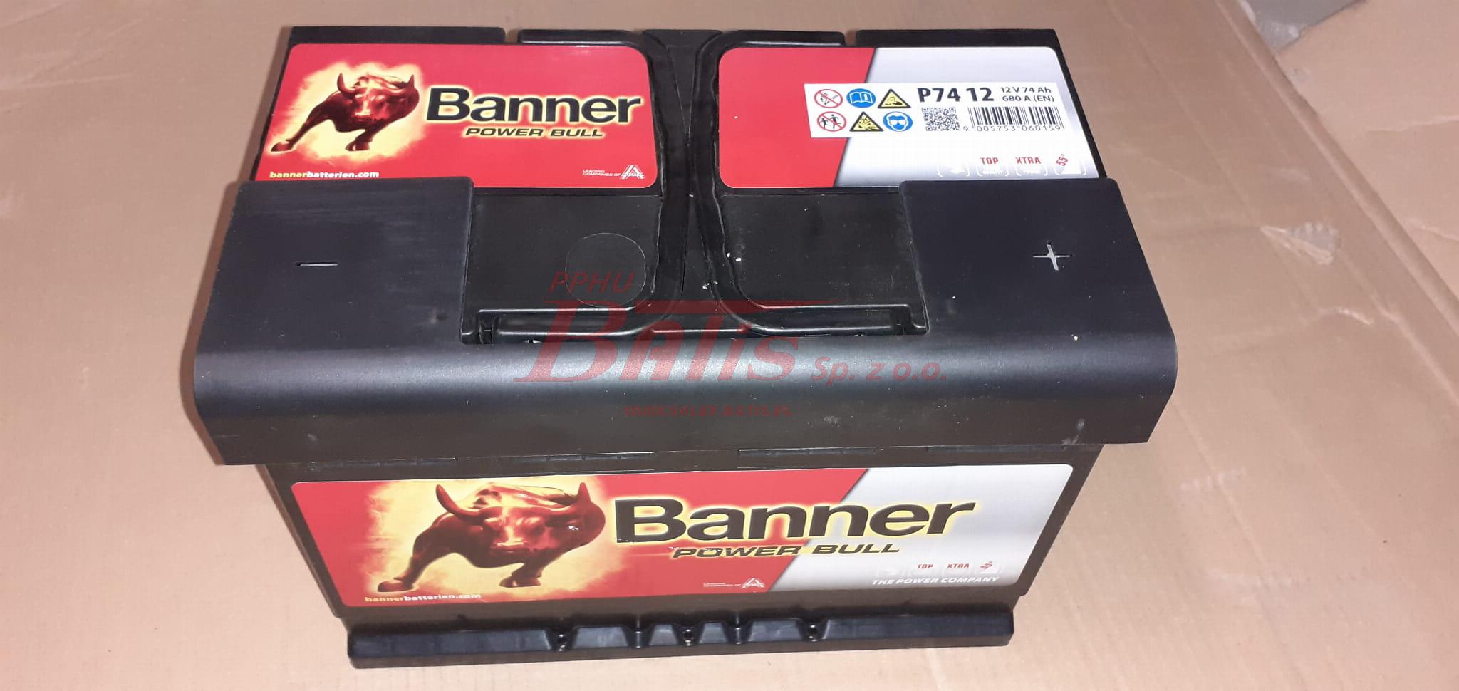 AKUMULATOR banner 12V 74AH 680A / banner power bull/ czarna skrzynka /wymiary 278*175*190 / prawy plus /
