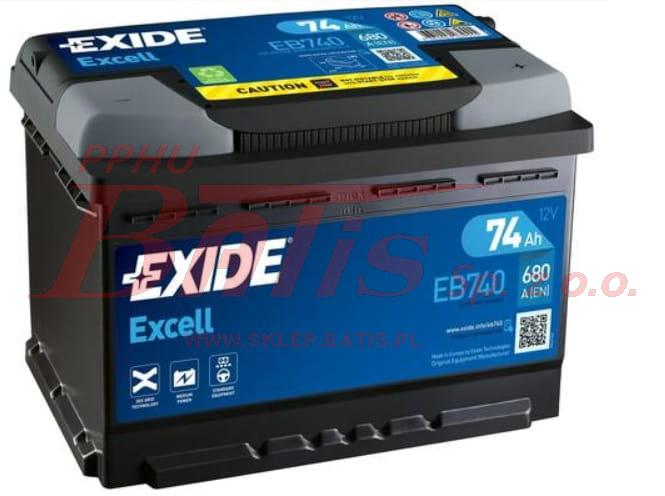 AKUMULATOR exide 12V 74AH 680A EXIDE EXCELL / prawy plus / / Wysokość [mm]: 190 / Szerokość [mm]: 175 / Długość [mm]: 278 / waga 16,6 kg. /