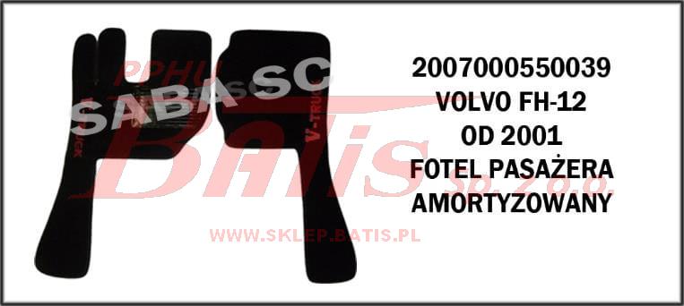 DYWANIK Z MATERIAŁU, PODŁOGA VOLVO FH12 od 2001r FOTEL PASAŻERA AMORTYZOWANY