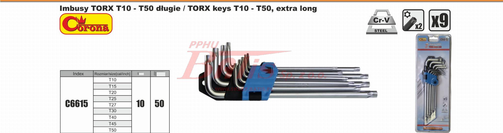 KPL. KLUCZY richmann TORX T10-T50 DŁUGIE / z otworem / C.V. / zamiennik - 000041 /