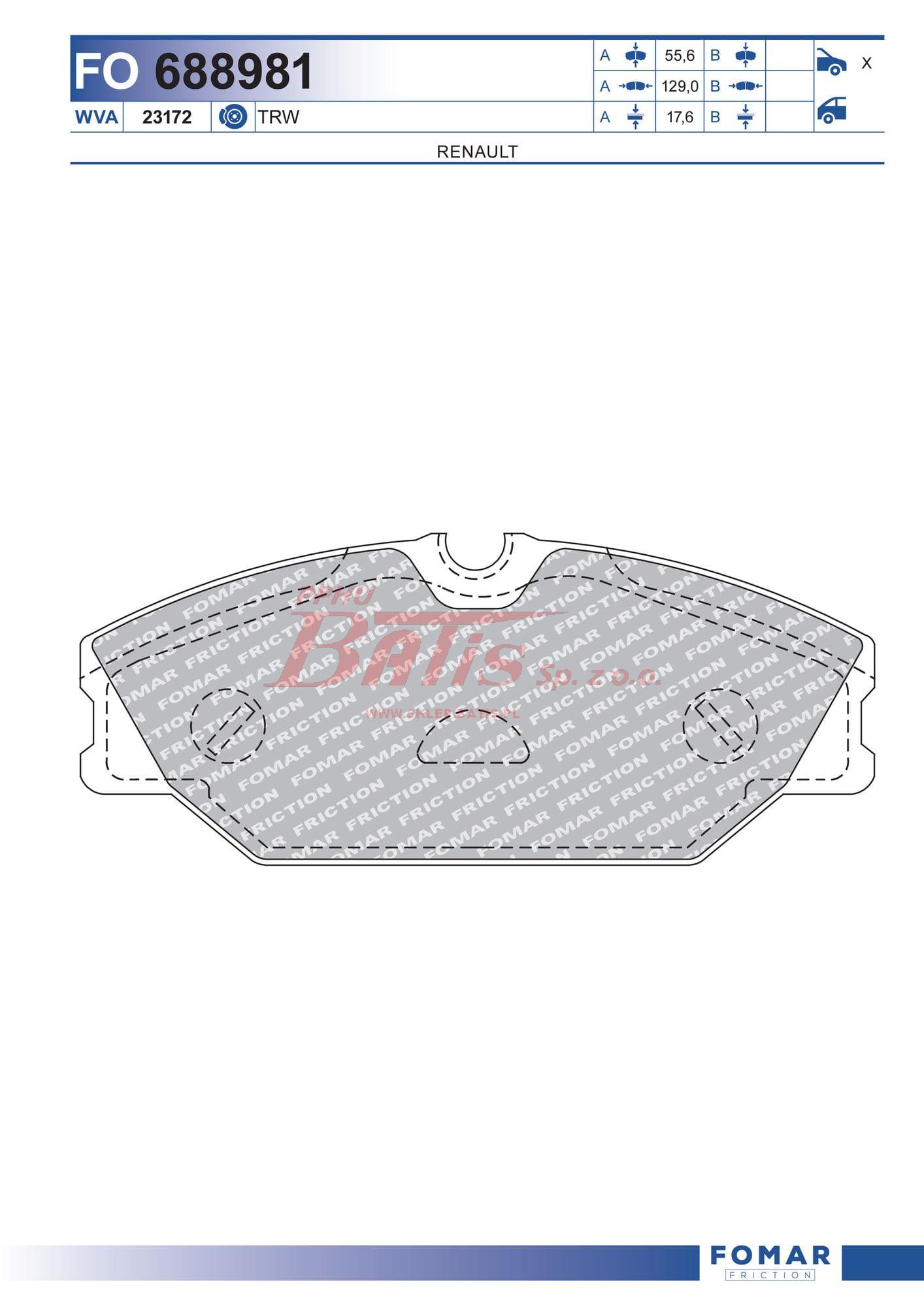 KPL. fomar KLOCKÓW HAMULCOWYCH PRZÓD RENAULT CLIO II, LAGUNA I, MEGANE I, MEGANE I CLASSIC, MEGANE I COACH, MEGANE SCENIC, SAFRANE II 1.4-3.0 11.93-
