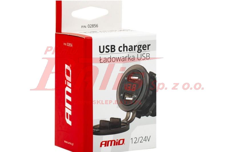 ŁADOWARKA amio / USB Z TESTEREM NAPIĘCIA DO ZABUDOWY 2xUSB / 12-24V / wodoodporna / z wyświetlaczem napięcia /