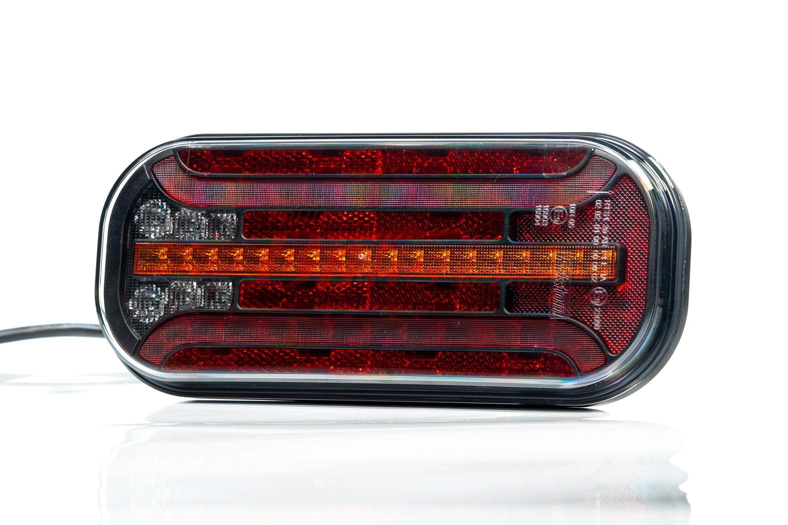 LAMPA fristom TYLNA 6-SEGMENTOWA LED 12-36V / ze światłem przeciwmgielnym / dynamiczny kierunkowskaz; pozycja; STOP; oświetlenie tablicy rejestracyjnej; odblask / przewód: 1m / druga strona: 1819470 /