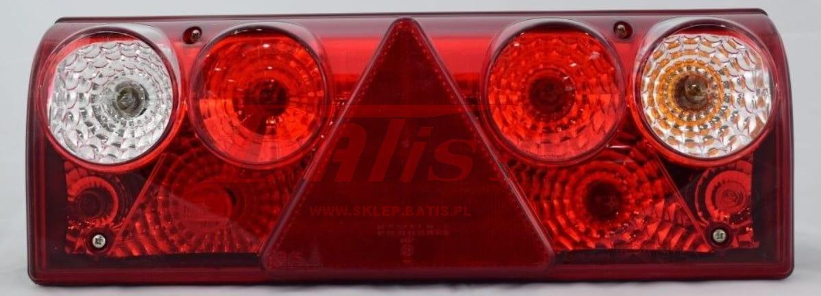 LAMPA schmitz / prawa TYLNA EUROPOINT II PRAWA Z TRÓJKĄTEM / 5 gniazd - jedno po srodku okrągłe i 4 owalne po bokach / 25-6430-507 WTYCZKA AMP2-KR/W / lewa strona po indeksem 171168 /