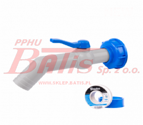 Zestaw - Kran PP 45° z przyłączem IBCS60x6 na wąż 32mm z taśmą PTFE