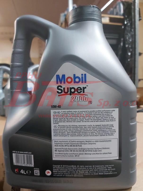 OLEJ mobil / 4 litry 10W40 TURBODIESEL SILNIKOWY / 2000 X1 / SUPER S / opakowanie 4 litry / sprzedawany na sztuki / stosowany silnikach benzynowych i wysokoprężnych bez filtrów cząstek stałych (DPF) / benzyna - diesel /