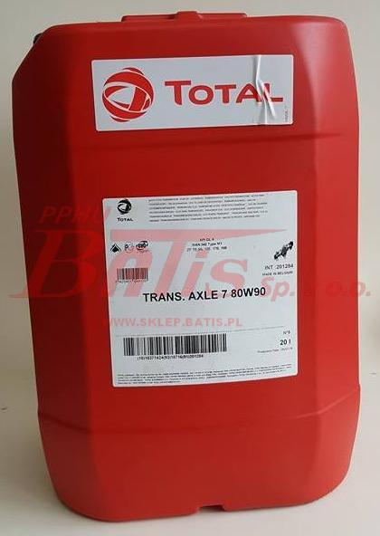 OLEJ total / 20 litrów 80W90 TRANS.AXLE 7 API GL-5,ZF TE-ML05A/07A/12A/16B/17B transmission axle 7 80w90 PRZEKŁADNIOWY / opakowanie 20 l / stosowany do mostu / zmiana nazwy TRANSMISSION/TRAXIUM /