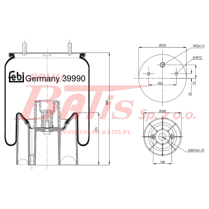 PODUSZKA febi ZAWIESZENIA 4157NP Z DZWONEM //2 SZPILKI WLOT//DZWON 2 OTWORY / dzwon plastikowy / notatka /
