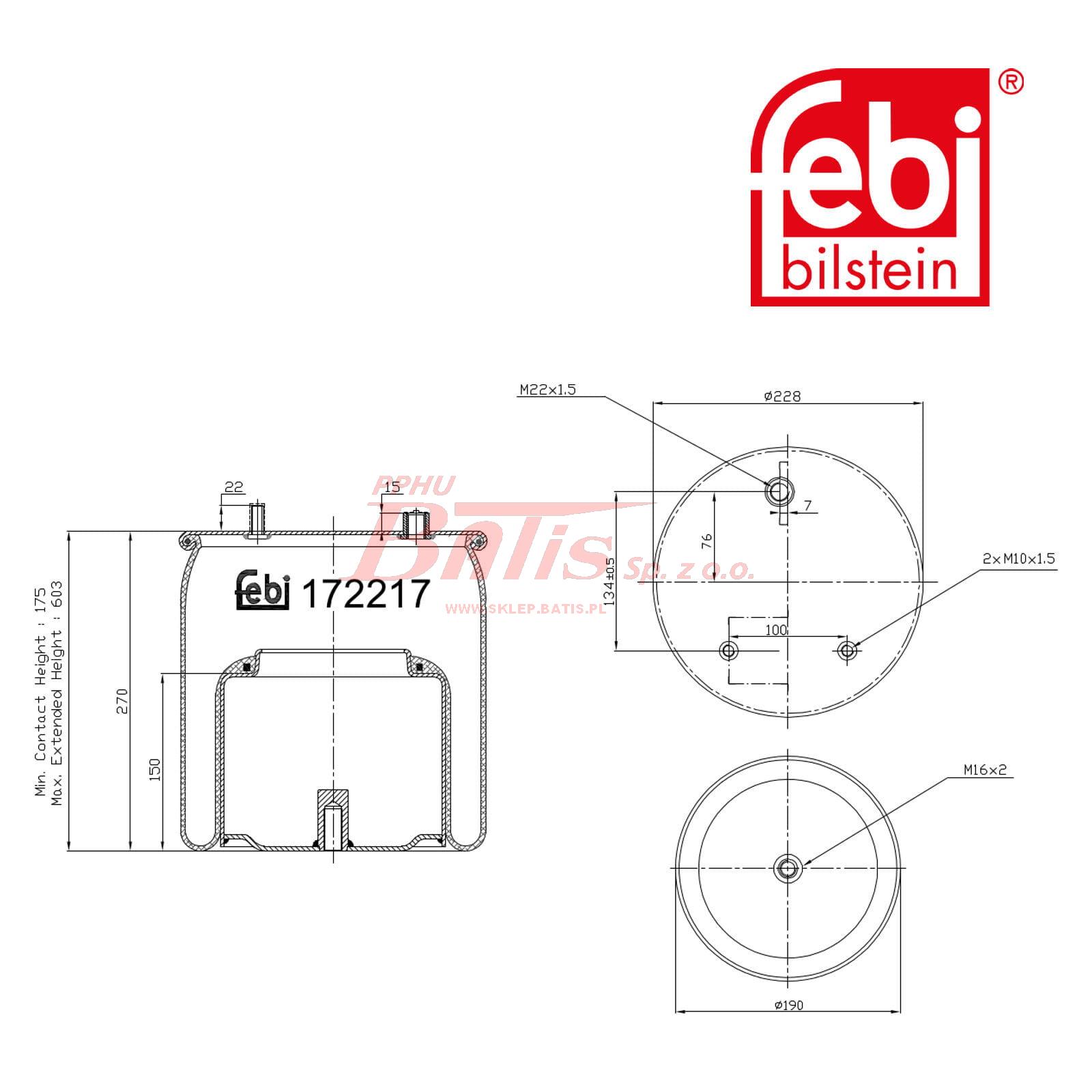 PODUSZKA febi / tył ZAWIESZENIA PNEUMATYCZNEGO / z tłokiem / DAF XF / DAF CF, XD, XF 106, XF II, XG, XG+ 10.12 /