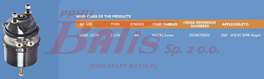 SIŁOWNIK btp HAMULCA TARCZA SAMOCHÓD/NACZEPA Q22/24P M22X1.5voss zaciskany DAF VOLVO BPW KOGEL btp