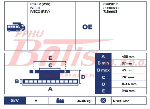 TARCZA HAMULCA fomar 432*45*210*139 12xM16 IVECO EUROCARGO/STRALIS TYLNA Z PIERŚCIENIEM ABS fomar
